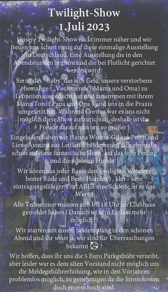 CAC Ausstellung Darmstadt 01.07.2023 von Angelika Heydrich · Veröffentlicht 25. Juni 2023 · Aktualisiert 25. Juni 2023Liebe Mitglieder,Darmstadt wirbt noch einmal mit der Nachtshow.Viel Spaß allen Teilnehmern