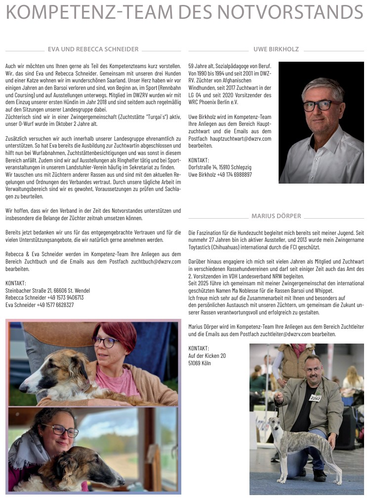 Liebe Mitglieder, da mir alle Zugänge (Mail, HP und der Datenbank) wieder geöffnet wurden, kann ich nun meine Arbeit für das Zuchtbuchamt wieder aufnehmen. Sie dürfen nun gerne ihre Unterlagen an meine Adresse: Schörderup...